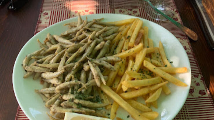 Gebratener kleiner Fisch mit Pommes frites – 12,00 €