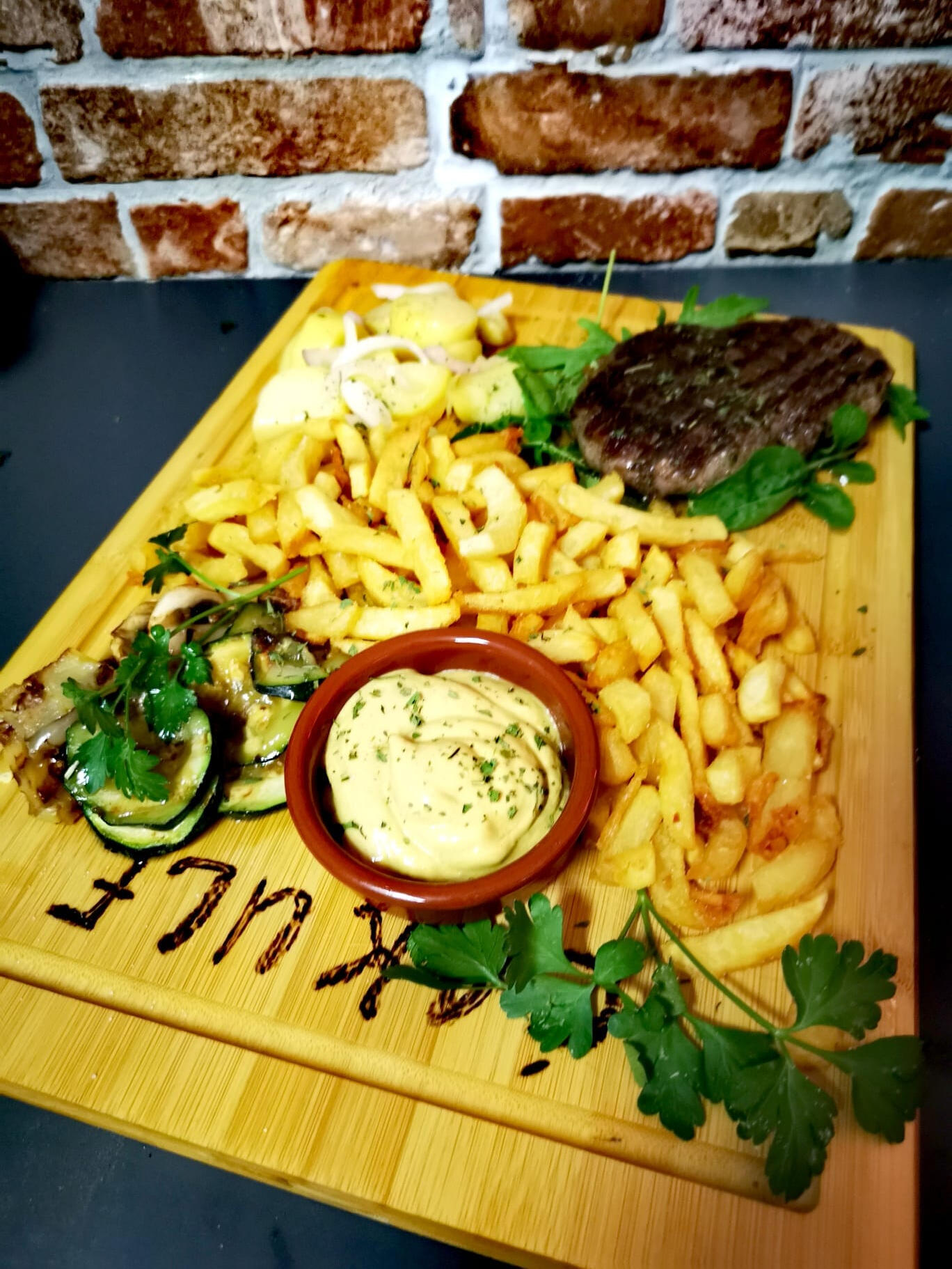 Steak mit Ofenkartoffeln und Gemüse – 32,00 €