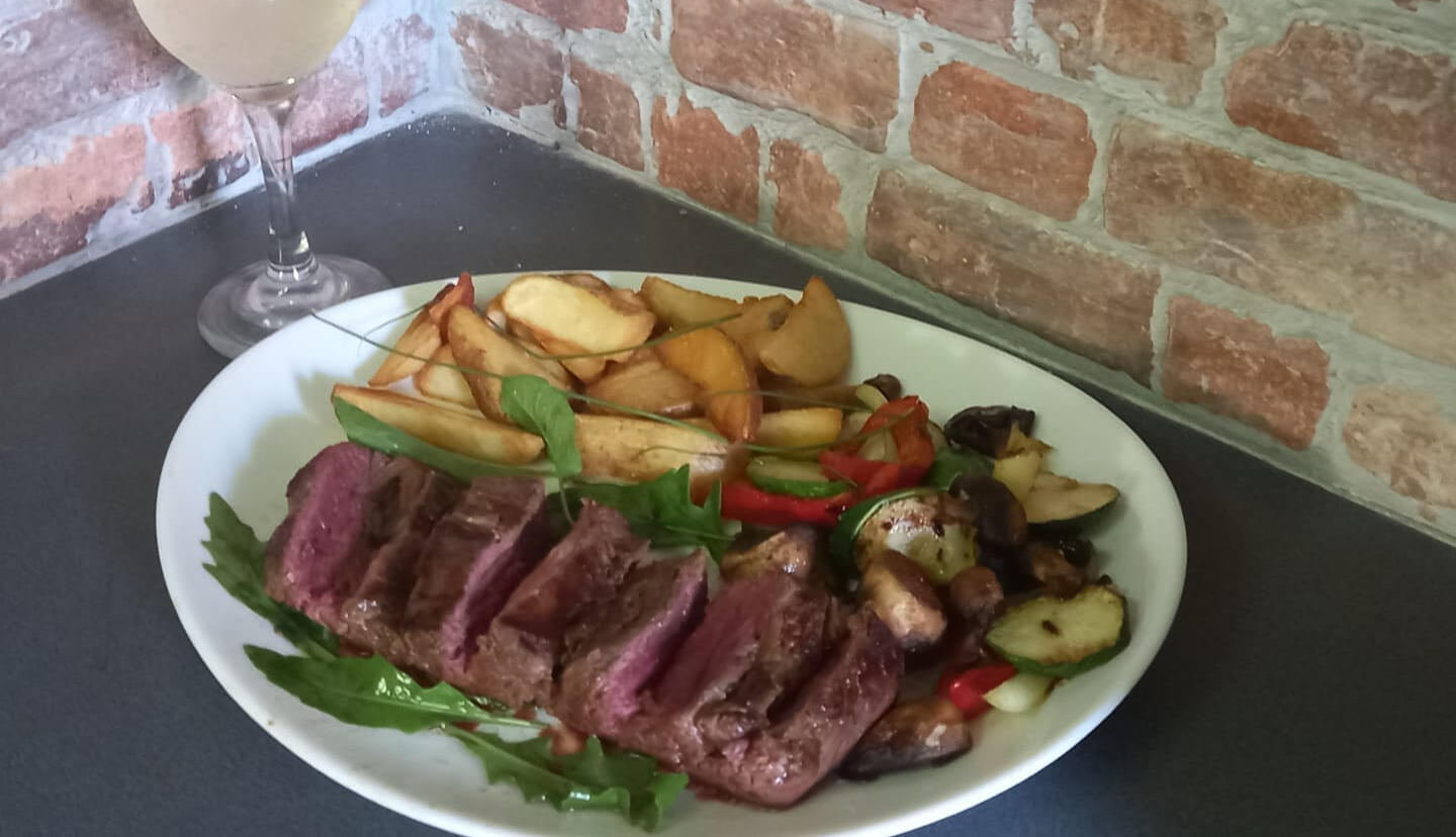 Ramsteak mit Ofenkartoffeln und Gemüse – 25,00 €