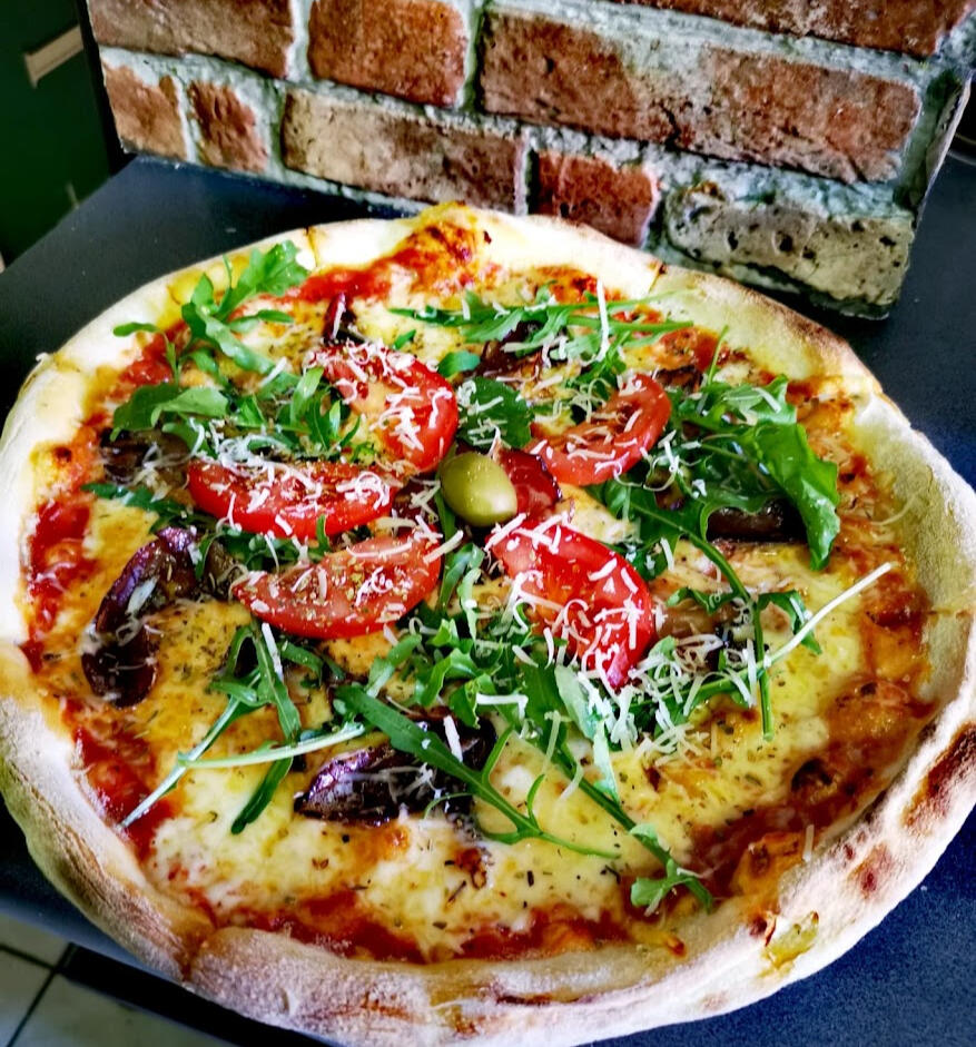 Pizza Čakule (Shokol, frische Tomaten, Rucola, Grana Padano-Käse) – 14,00 €