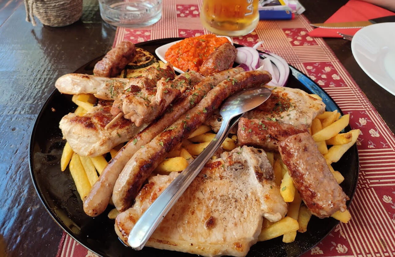 Menü für zwei Personen mit Pommes frites und Gemüse (Schnitten, Würstchen, Chevapi, Hähnchen, Wiener Steak) – 40,00 €